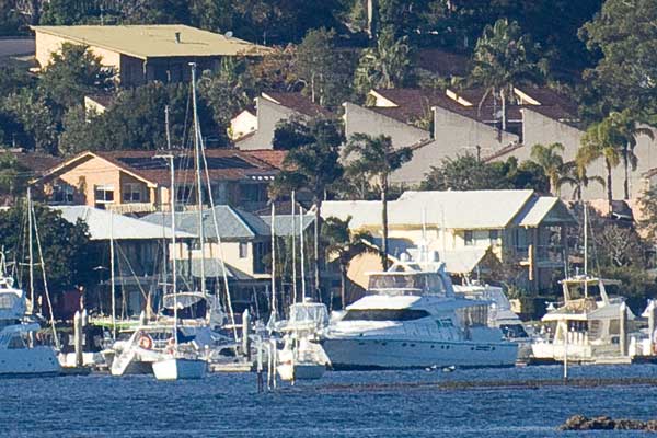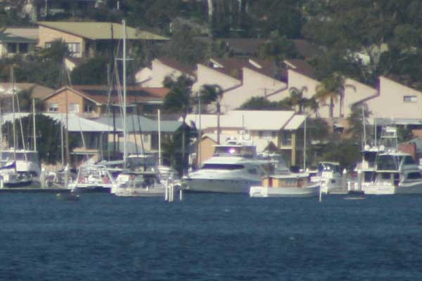 Ik heb gister een foto gemaakt vanaf een punt in North Arm Cove (ongeveer een 1 km vanaf het object) en die vergeleken met een foto die ik bij ongeveer gelijke weersomstandigheden en licht twee jaar eerder had gemaakt met mijn oude telephoto lens. Dat is een EF 75-300mm 1:4-5.6mm III. Deze lens kwam met de "bundel" toen ik mijn eerste Canon body (400D) kocht.